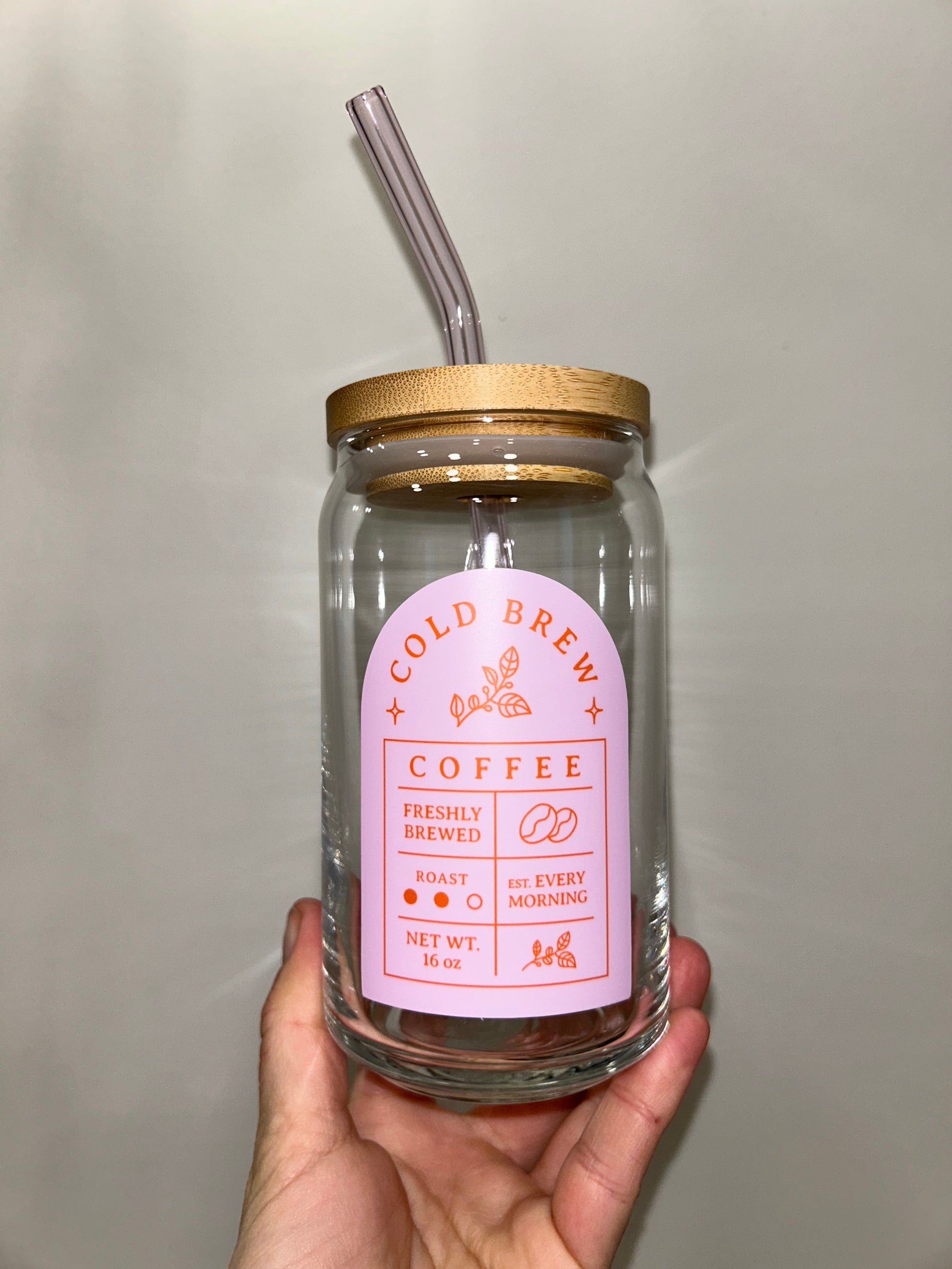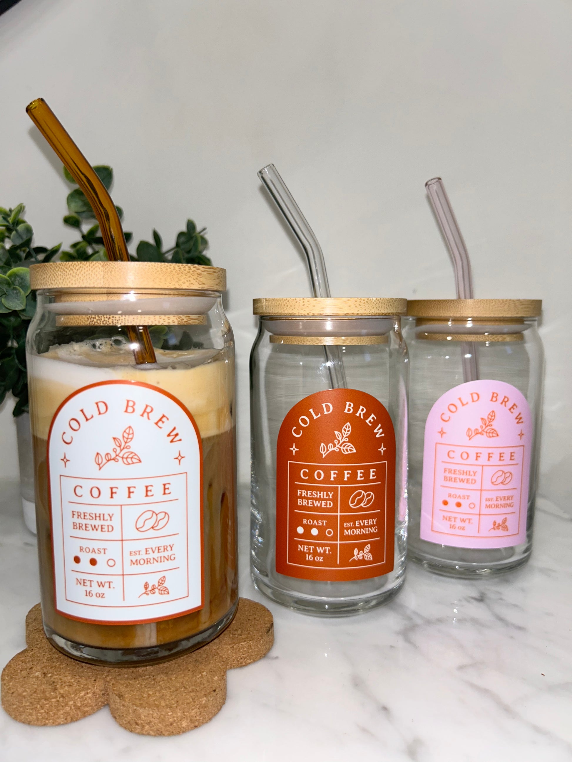 16 or 20 oz beer can glass with a simplistic coffee logo in permanent adhesive vinyl in your choice of color