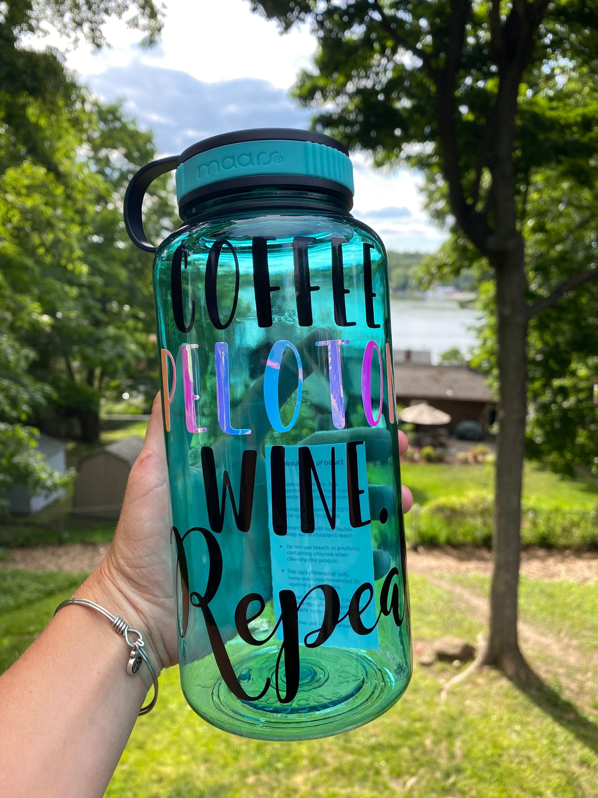 ITEM DESCRIPTION 34 oz wide mouth water bottle Coffee, peloton, wine, repeat