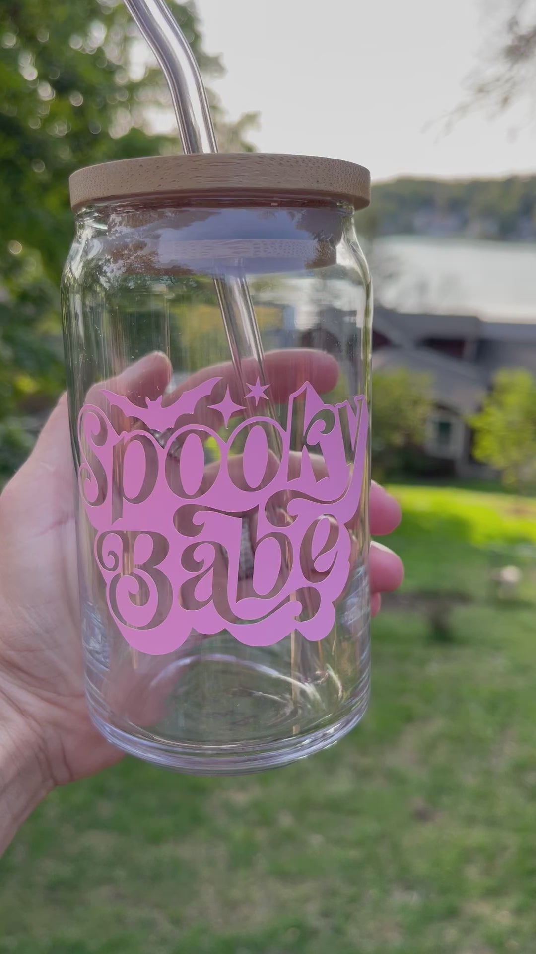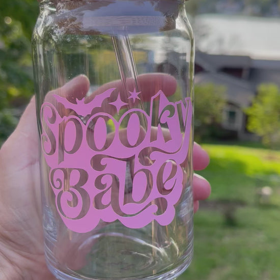 16 or 20 oz beer can glass with spooky babe decal. Choose to receive only glass or add a lid and straw to make this glass portable!