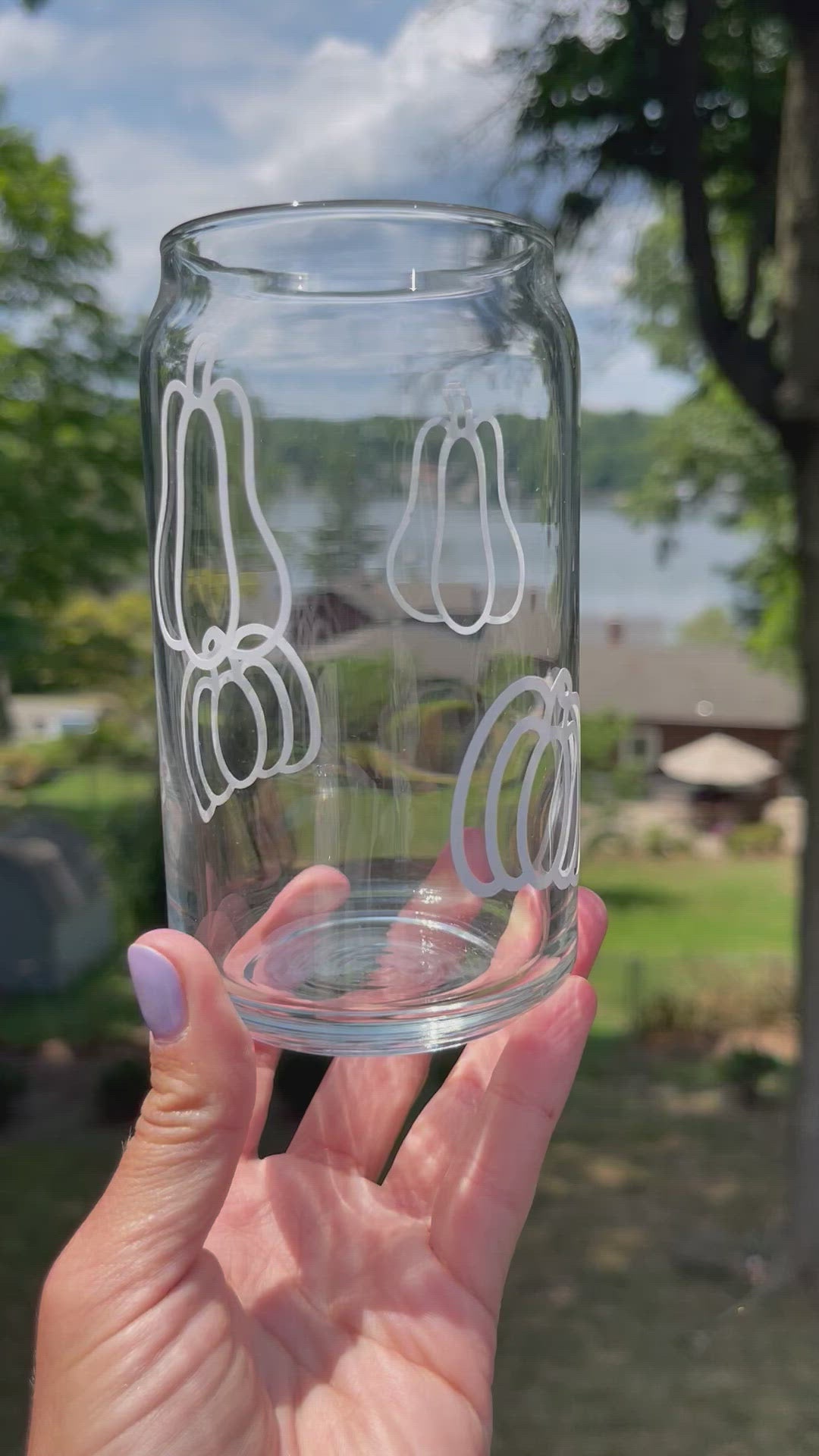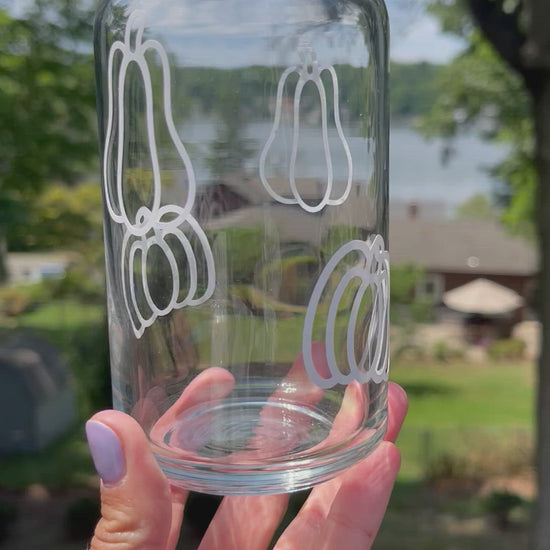 16 or 20 oz libbey can glass decorated with permanent adhesive vinyl in a pumpkin and squash design