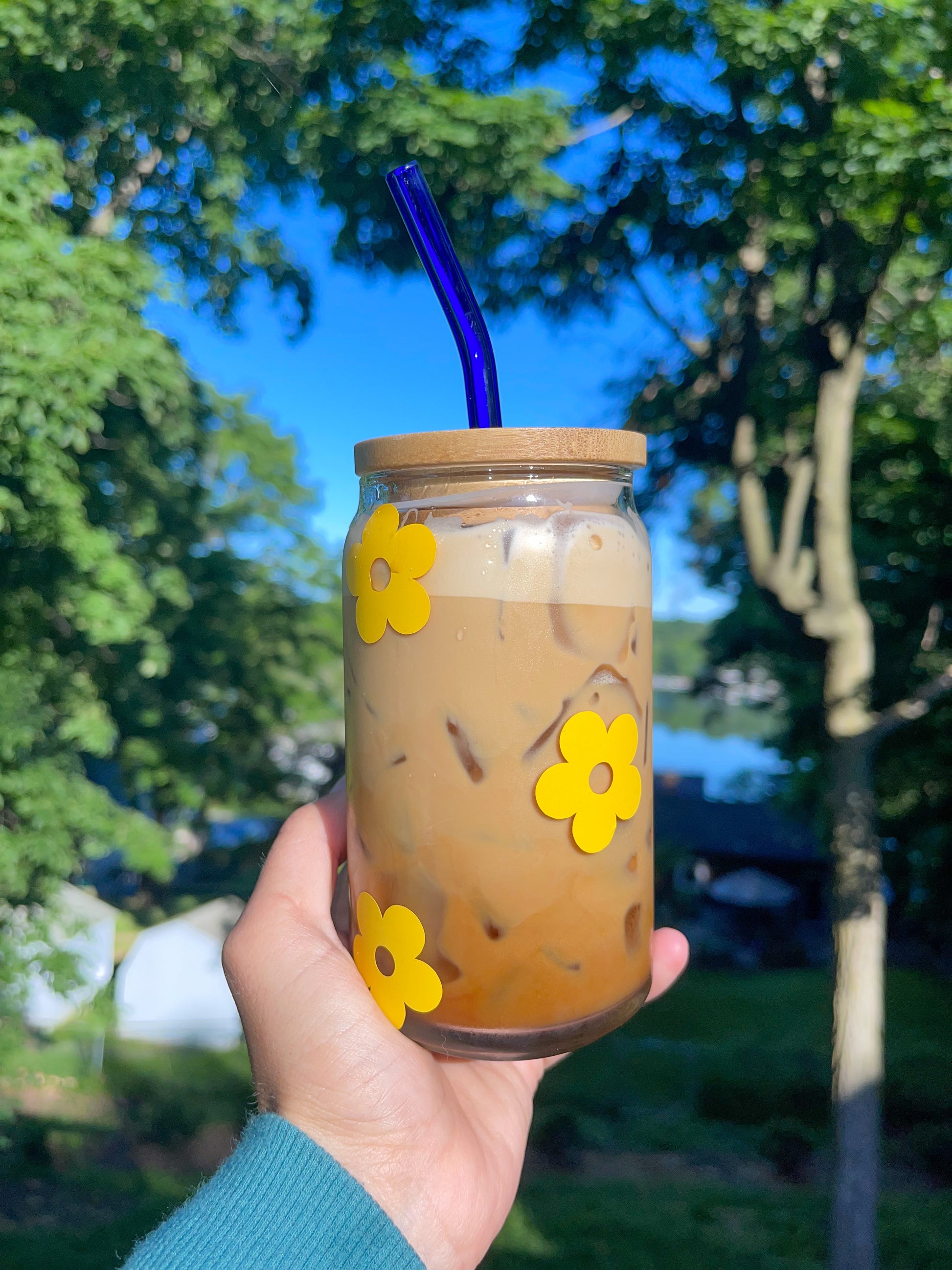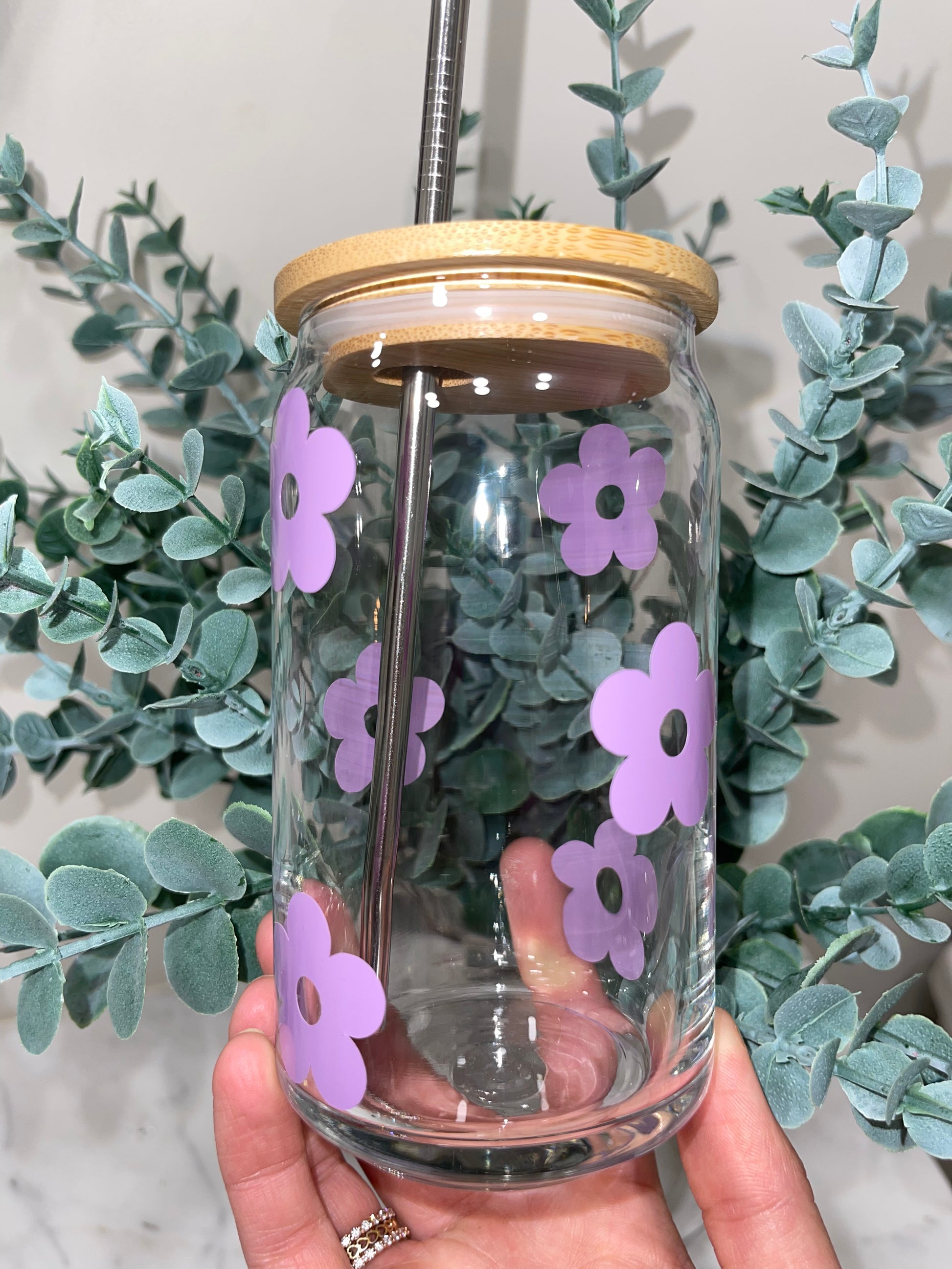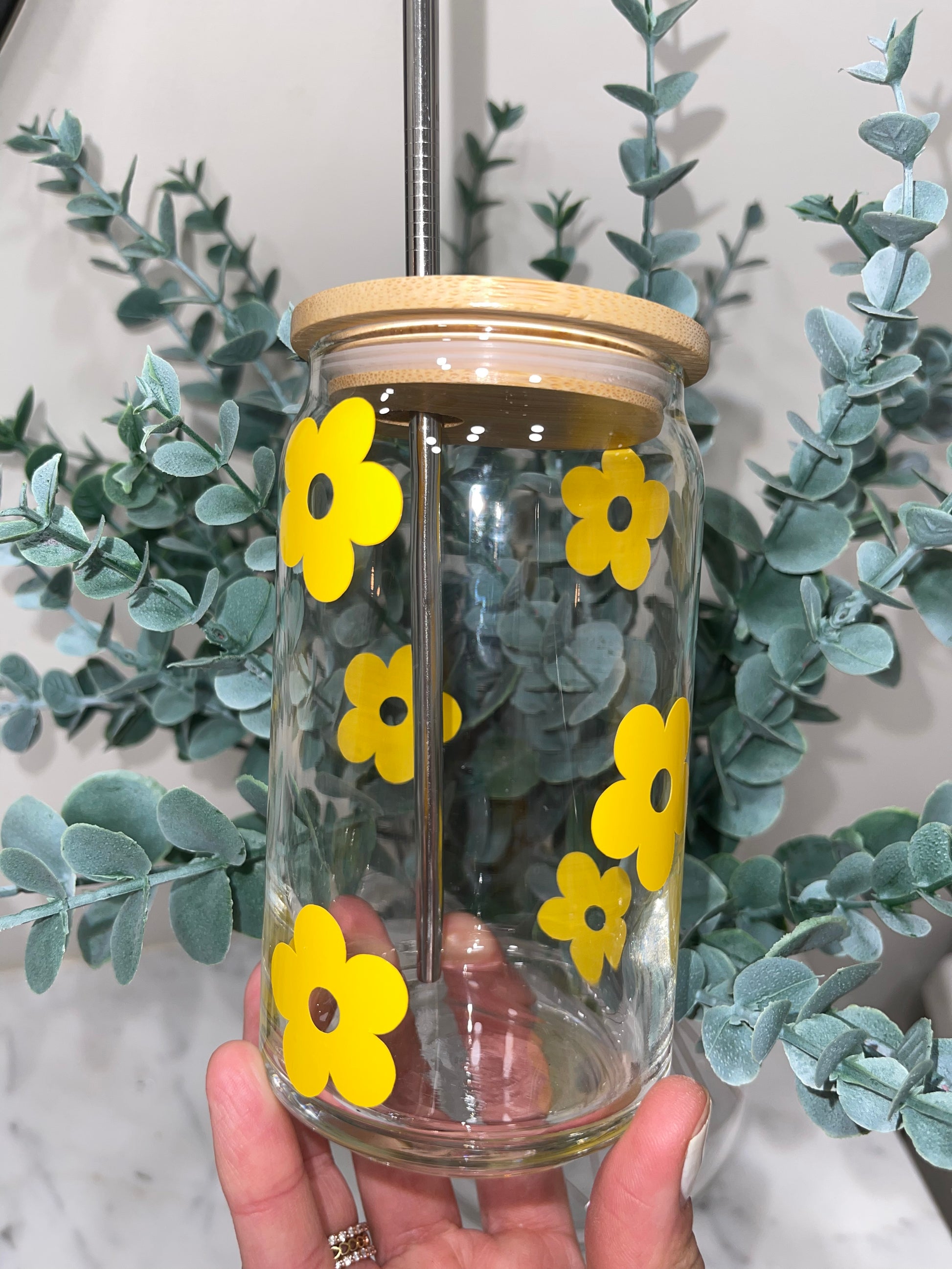 16 or 20 oz beer can glass with retro daisy permanent adhesive vinyl in your choice of color