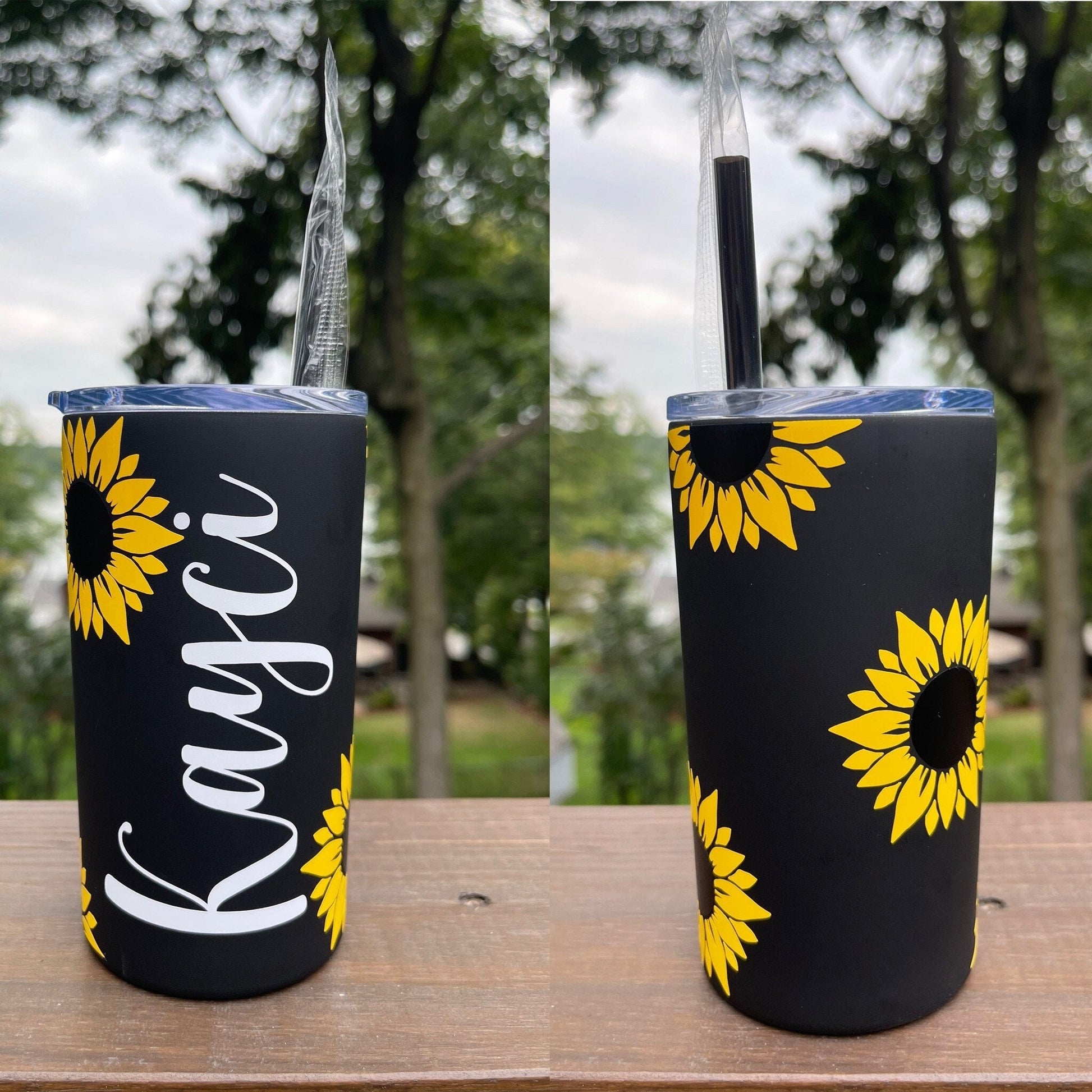 Sunflower Tumbler, personalized sunflower cup, Gift for her, Floral Tumbler, 12 oz Tumbler